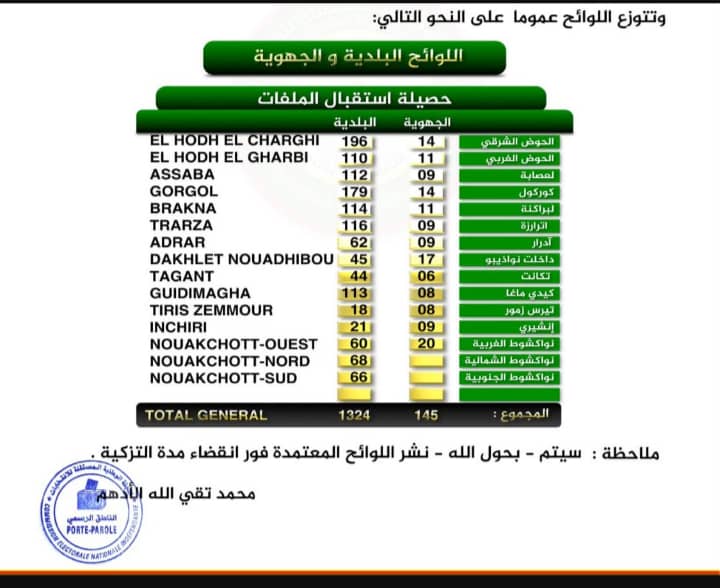 Selon le communiqué, le nombre de partis désignés pour les listes a atteint 25 partis politiques (c’est-à-dire le nombre des partis reconnus). Alors que le nombre de listes régionales a atteint 145, et le nombre de listes municipales a atteint 1324.